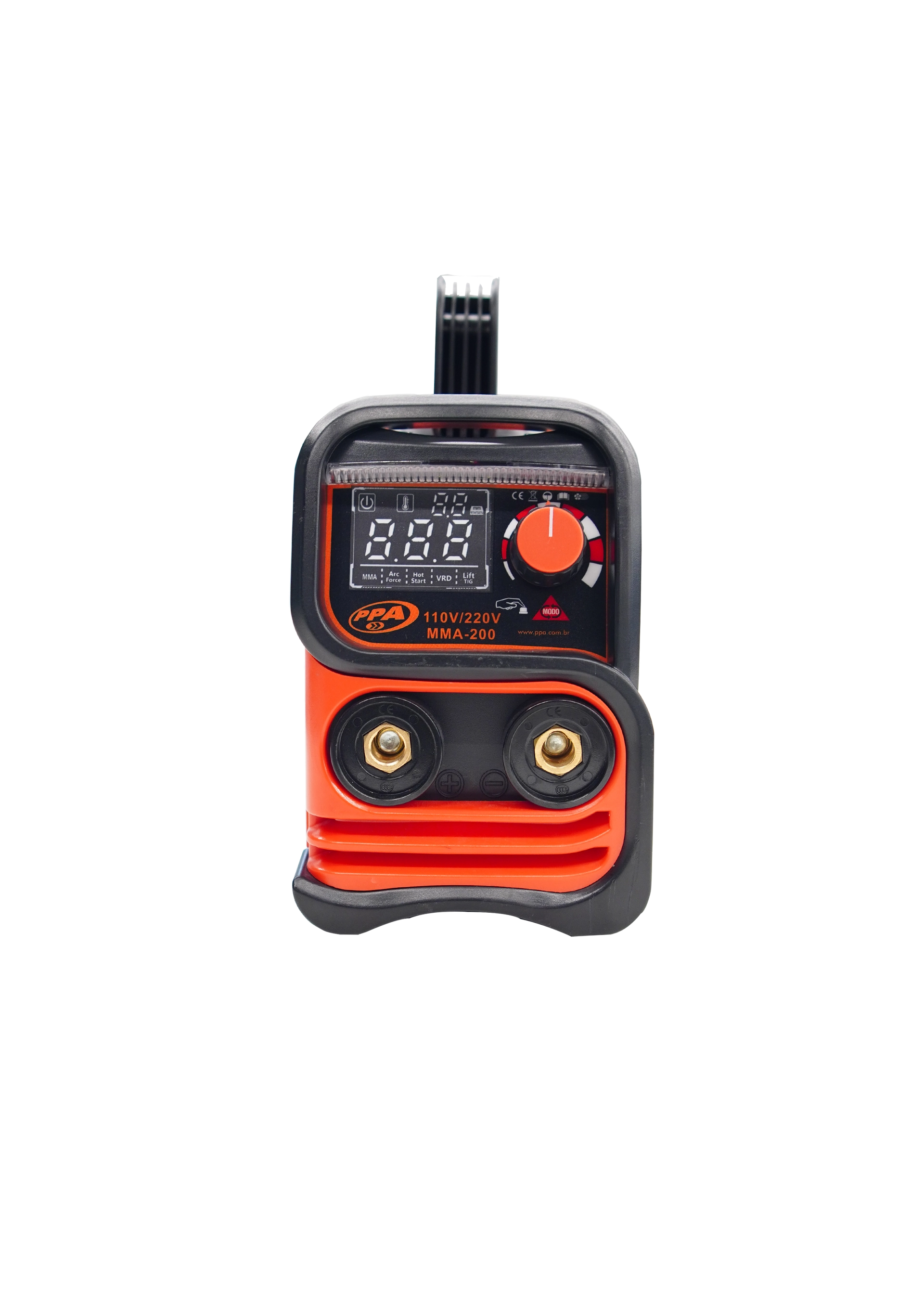 A máquina de solda PPA oferece desempenho e confiabilidade para aplicações profissionais, estando disponível nas versões bivolt automático e 220V. Possui ciclo de trabalho nominal de 60%, fator de potência 0,9, classe de proteção IP21S e classe de isolamento H, garantindo eficiência energética, segurança operacional e maior durabilidade mesmo em uso contínuo.